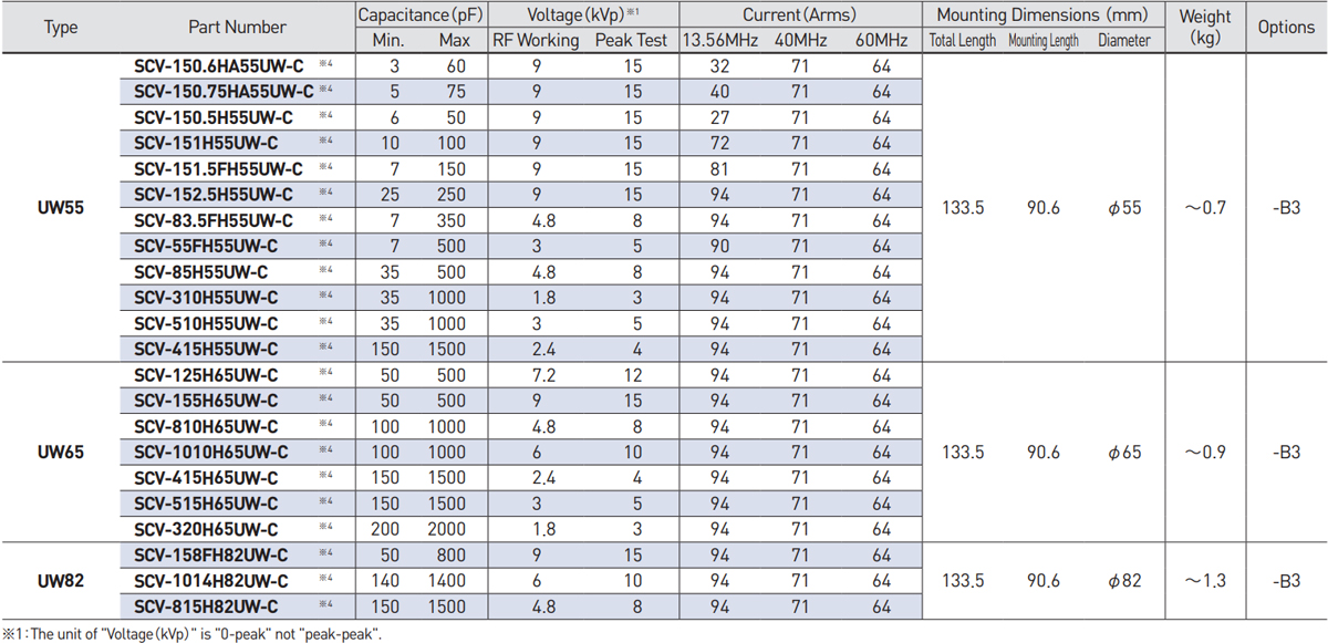 Meiden has adopted ball screws for variable capacitors to overcome overload conditions such as high speed / high acceleration reverse matching, same range continuous operation, micro-motion and hunting oscillation. They provide vastly superior life expectancy, exhibiting near-zero friction for high-speed and high acceleration / deceleration functions. The UW series is available with small ball screw profiles to meet size constraints and extend life.